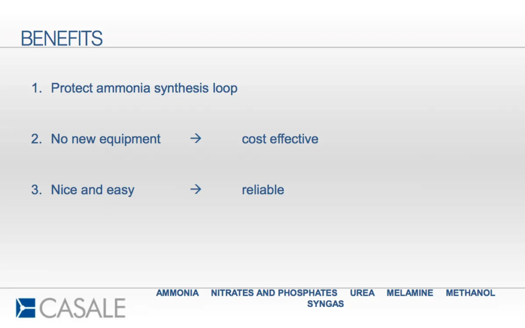 While other companies are feverishly working to develop complex technological solutions for the integration of renewables to ammonia production, Casale has already refined its sales pitch for this operational strategy: “Nice and easy,” which means “Reliable.”