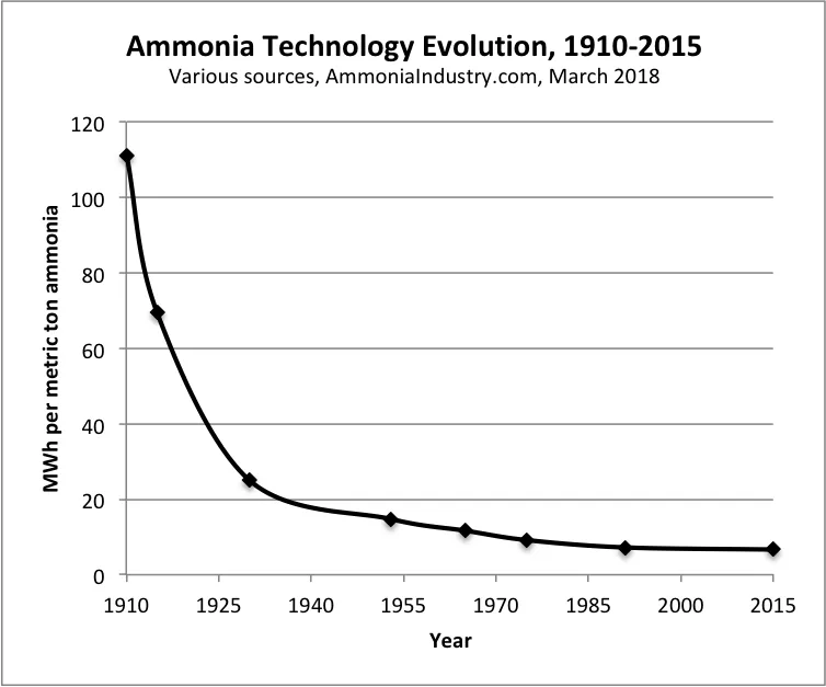 Haber-Bosch efficiency improvements: diminishing returns