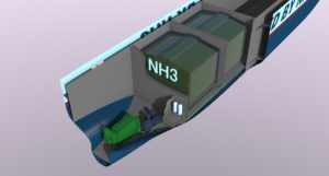C-Job’s maritime ammonia fuel tank designs also allow for “safety margins,” from the side and bottom, comparable to those defined in the existing regulations for LNG- (liquified natural gas) fueled ships.
