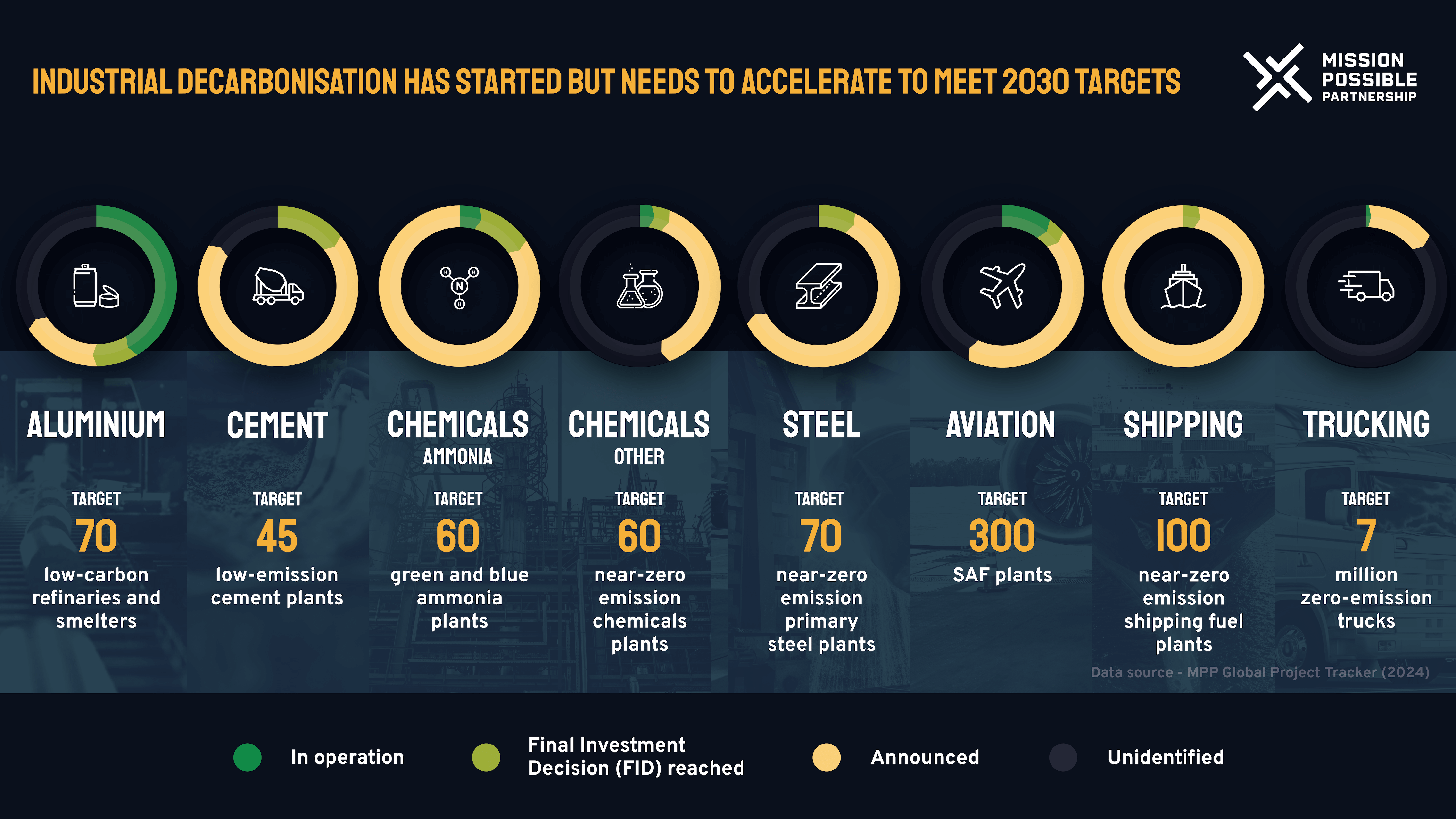 Click to expand. Mission Possible Partnership and the Industrial Transition Accelerator are leading a coalition of signatories calling for urgent action to realize the significant pipeline of industrial, low-carbon projects yet to reach FID.