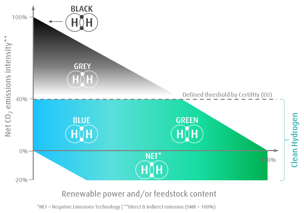 Clean Hydrogen can be differentiated in 2 major categories, Blue Hydrogen and Green Hydrogen (see Figure 2). Blue Hydrogen is produced from fossil feedstock by means of technologies such as steam methane reforming (SMR) and coal gasification in combination with CCUS technology. The cost of Blue Hydrogen is projected to decrease and can drop below 1.50 US dollar per kg in most preferred regions in the near-term and is set out to decline further to as low as 1.20 US dollar per kg by 2025. A price of 50 US dollar per tonne of CO2 would allow Blue Hydrogen at a production cost of 1.50 US dollar per kg to reach cost parity with Black and Grey Hydrogen.