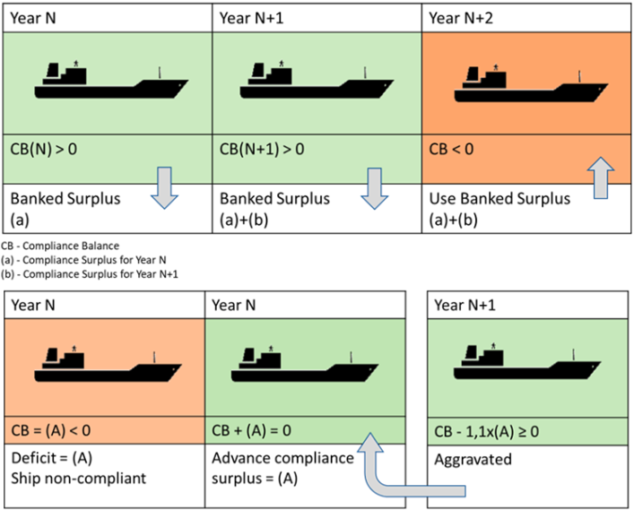Click to expand. The FuelEU scheme will allow a ship to bank or borrow compliance deficits/surpluses. Source: EU Commission.