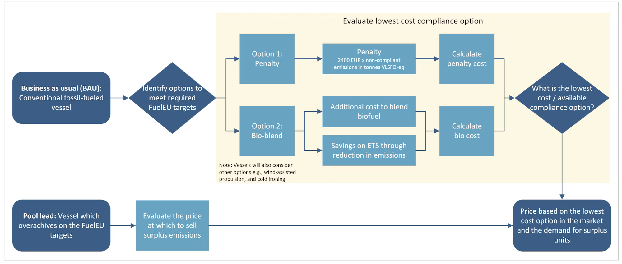 Click to expand. The FuelEU scheme gives operators several options for navigating the scheme. Source: Mærsk Mc-Kinney Møller Center for Zero Carbon Shipping.