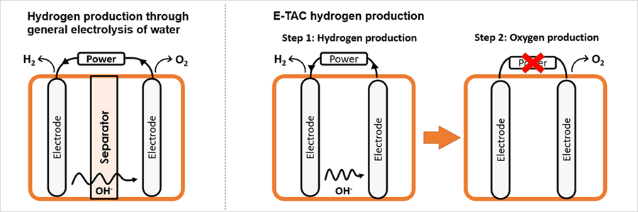 Low efficiency in the electrolysis process can lead to high hydrogen production and operational costs, and is considered one of the main constraints impeding commercial scale production. H2Pro has developed a new method for water electrolysis, called Electrochemical, Thermally Activated Chemical water splitting (E-TAC). While oxygen and hydrogen are generated simultaneously in conventional electrolysis and require separation by a sequestration membrane (which requires precious metals and is therefore costly), the E-TAC method generates oxygen and hydrogen separately, which eliminates the need for the membrane in a simpler and more efficient process (~75% for conventional electrolysis vs 98.7% for the E-TAC method).