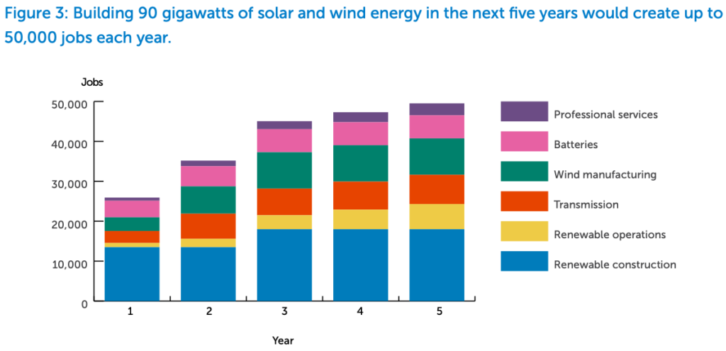 While many of these new jobs are in other sectors of the energy economy, like buildings, the plan quantifies the benefits of “new industries, such as renewable hydrogen, energy-intensive manufacturing, zero-emissions steel and electricity exports.”