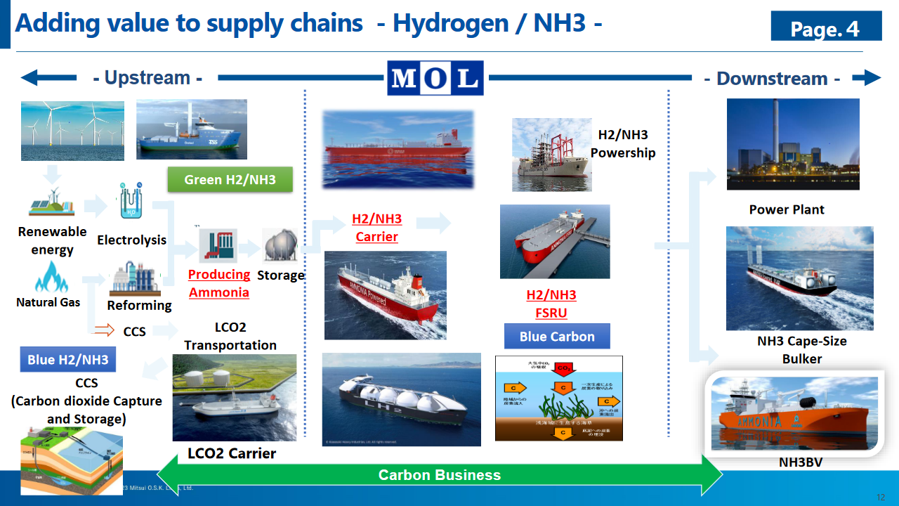 In the complicated maritime fuel supply chain, there are many opportunities for certification to facilitate the uptake of ammonia fuel. For maritime multinationals like Mitsui OSK Lines (MOL), certification will be critical to achieving fuel transition roadmaps. MOL’s “carbon business” includes upstream interests such as ammonia production, ammonia storage, and liquefied CO2 transportation. Downstream, MOL is exploring power generation and ammonia bunkering. To achieve its target of utilising 2 million tonnes of ammonia fuel per year in 2035 across its fleet – and achieve FID for all these supply chain projects – unified certification is critical for MOL.