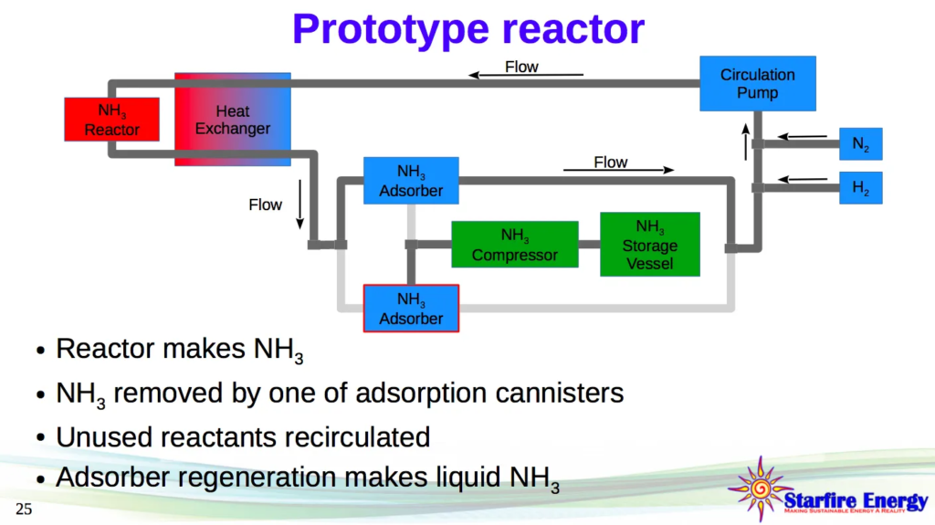The Starfire team has already more-or-less completed its fast-ramping reactor, due to be delivered in the first quarter of 2018, and intends to finish building a prototype system, with a production capacity of 3kg ammonia per day, by the second quarter of 2019.