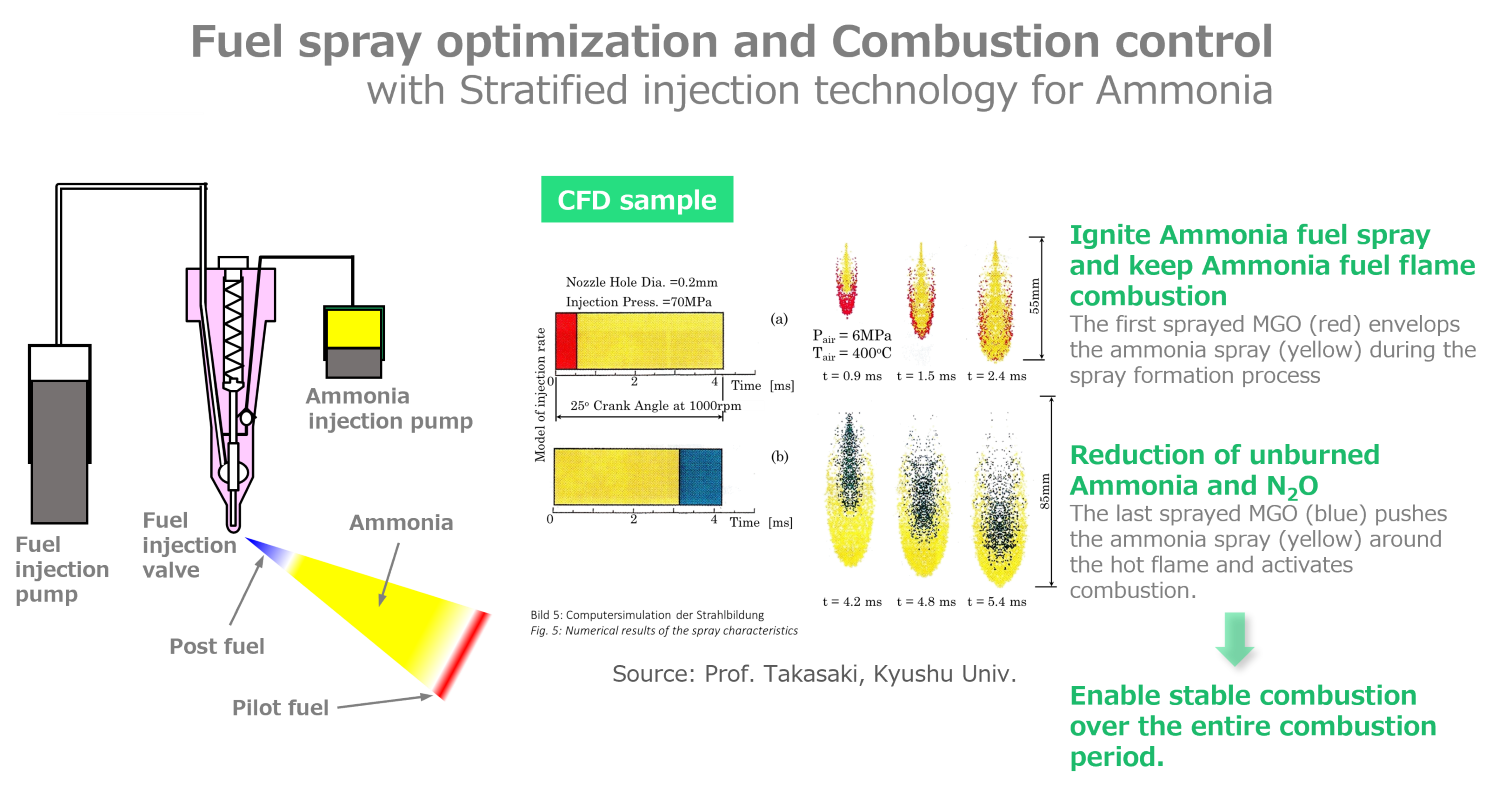 Click to expand. The J-ENG led consortium has developed a stratified injection technology for ammonia and heavy oil pilot fuel in its 2-stroke engine, optimizing stable combustion. Source: Japan Engine Corporation.