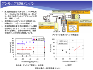 The National Maritime Research Institute is operating a 7.7kW single-cylinder diesel engine by mixing ammonia gas (NH3), a carbon-free fuel, with the intake air.