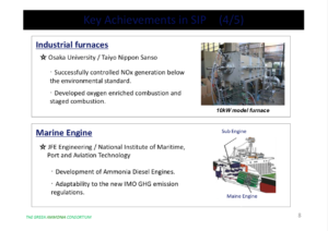 Although the announcement discloses few details, this nonetheless represents the next step in commercialization for the ammonia engine development work that has been underway for some years at the National Maritime Research Institute (NMRI) as part of the SIP Energy Carriers program.
