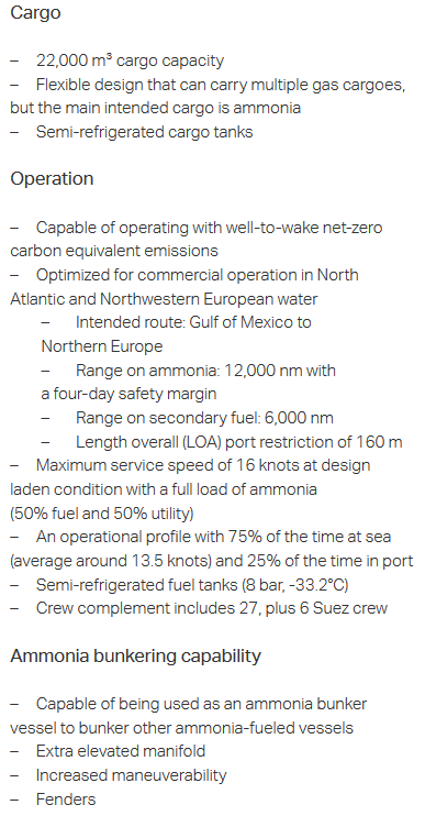 Bunkering capabilities need further design work, as will the non-ammonia consuming power sources on-board (auxiliary engines and boilers). The next step is a rigorous HAZID process, with the project team eventually targeting AiP from DNV and a design package able to be submitted to shipyards for construction tenders. Construction and delivery of the MS NoGAPS is expected in 2024-25.