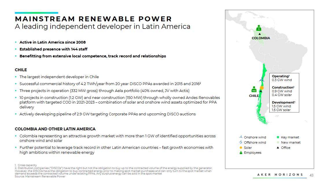 Two other projects in Aker Clean Hydrogen’s initial portfolio are also worthy of note. Both are in the Southern Cone region of South America. One consists of a collaboration between Aker Clean Hydrogen and Mainstream Renewable Power to “explore the development of green hydrogen and low-cost ammonia production in Chile, combining Aker Clean Hydrogen’s hydrogen project development capabilities and Mainstream Renewable Power’s position as a leading renewable energy developer in the South American country,” according to a February 19 story in Energy Global magazine.