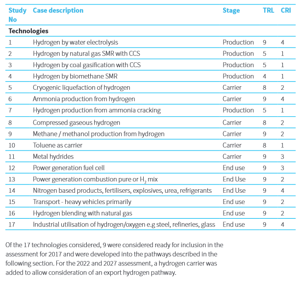 The report provides a valuable in-depth analysis of a series of technologies that could be used to build a viable green hydrogen value-chain, and assesses each option for both TRI (Technological Readiness Level, a metric established by NASA) and CRI (Commercial Readiness Index, a metric established by Australia’s renewable energy agency, ARENA).