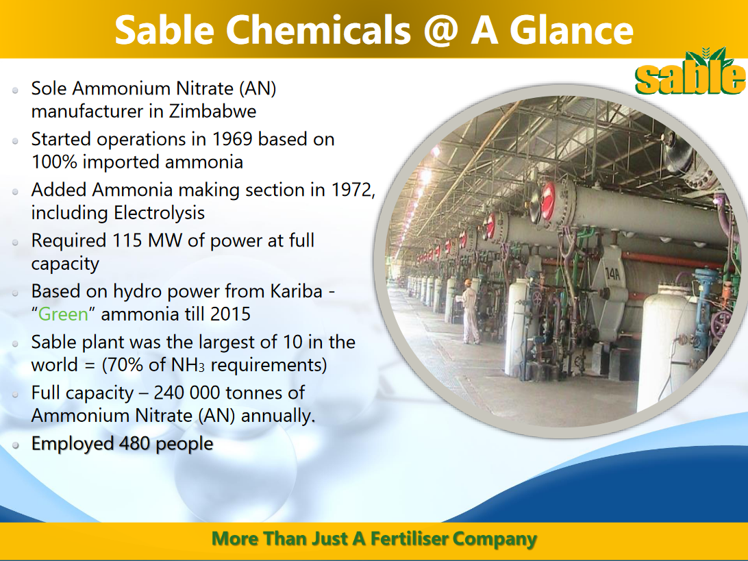 Sable Chemicals is one of the few companies with operational experience in renewable ammonia production. The company produced renewable ammonia from 1972 until 2015, based on alkaline electrolysis powered by Zimbabwe’s hydroelectric-dominated grid. About 240,000 of ammonium nitrate was produced annually at their Kariba plant in northern Zimbabwe.