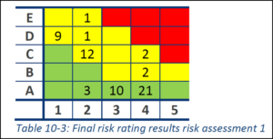 De Vries assigns each of the 61 failure modes to one of the risk matrix cells. The 28 that fall in the red zone clearly require mitigation. The 23 that fall in the yellow zone “are to be reviewed [to determine] if mitigation is sufficiently cost-effective.” After systematically working through the red and yellow failure modes, De Vries develops risk mitigation measures in 15 categories. “Applying these mitigations,” he says, “brings the risks . . . to a lower tolerable and acceptable level.”