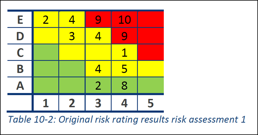 After working through his first three steps, De Vries produces a list of 61 failure modes. An example is “flooding and ammonia leakage in cargo hold” caused by a ship collision. This creates an initial risk ranking of E3: something that is “very unlikely” to happen but potentially resulting in multiple fatalities and catastrophic damage if it does.