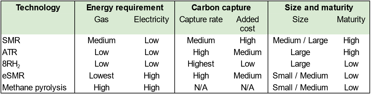 CO2 emissions in the flue gas may be avoided in steam methane reformers by utilizing hydrogen burners instead of gas burners. However, newbuild steam methane reformers are unlikely to materialize for large-scale, low-emission ammonia production, given that mature, readily-available alternative technologies have a lower gas consumption.