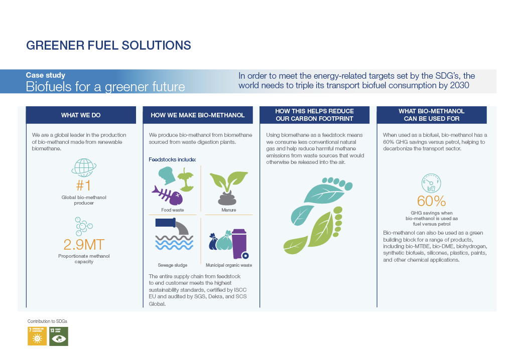 OCI’s BioMCN division describes itself as “one of Europe’s largest methanol producers and is the first company in the world to produce and sell industrial quantities of high-quality bio-methanol, a second-generation biofuel.” Its bio-methanol is derived from “biogas sourced from waste digestion plants.” OCI claims current bio-methanol production of 2.9 million tonnes across BioMCN and its OCI Beaumont (Texas) division. (A large container ship can carry order-of-magnitude 10,000 tonnes of fuel.)