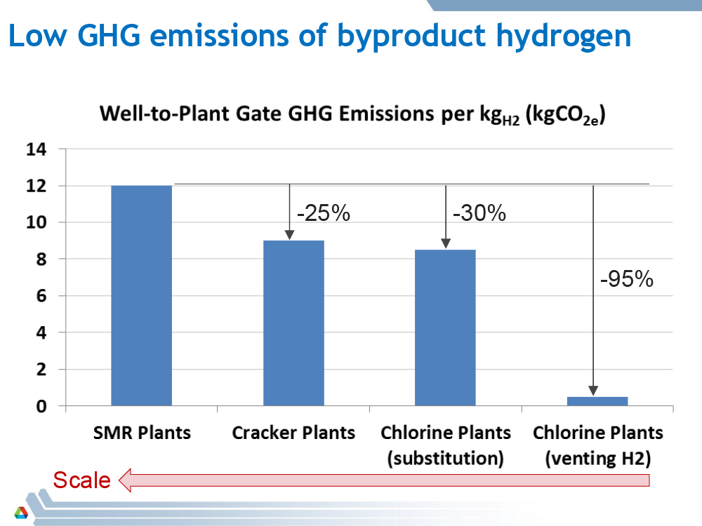 In a presentation last year, Amgad Elgowainy of Argonne National Laboratory carefully articulated the answer as a 25% reduction in carbon intensity (measured as carbon dioxide equivalent, CO2e) achieved by using byproduct hydrogen from crackers relative to conventional SMR production. His presentation also detailed the national availability (scale) of this and other byproduct hydrogen sources.